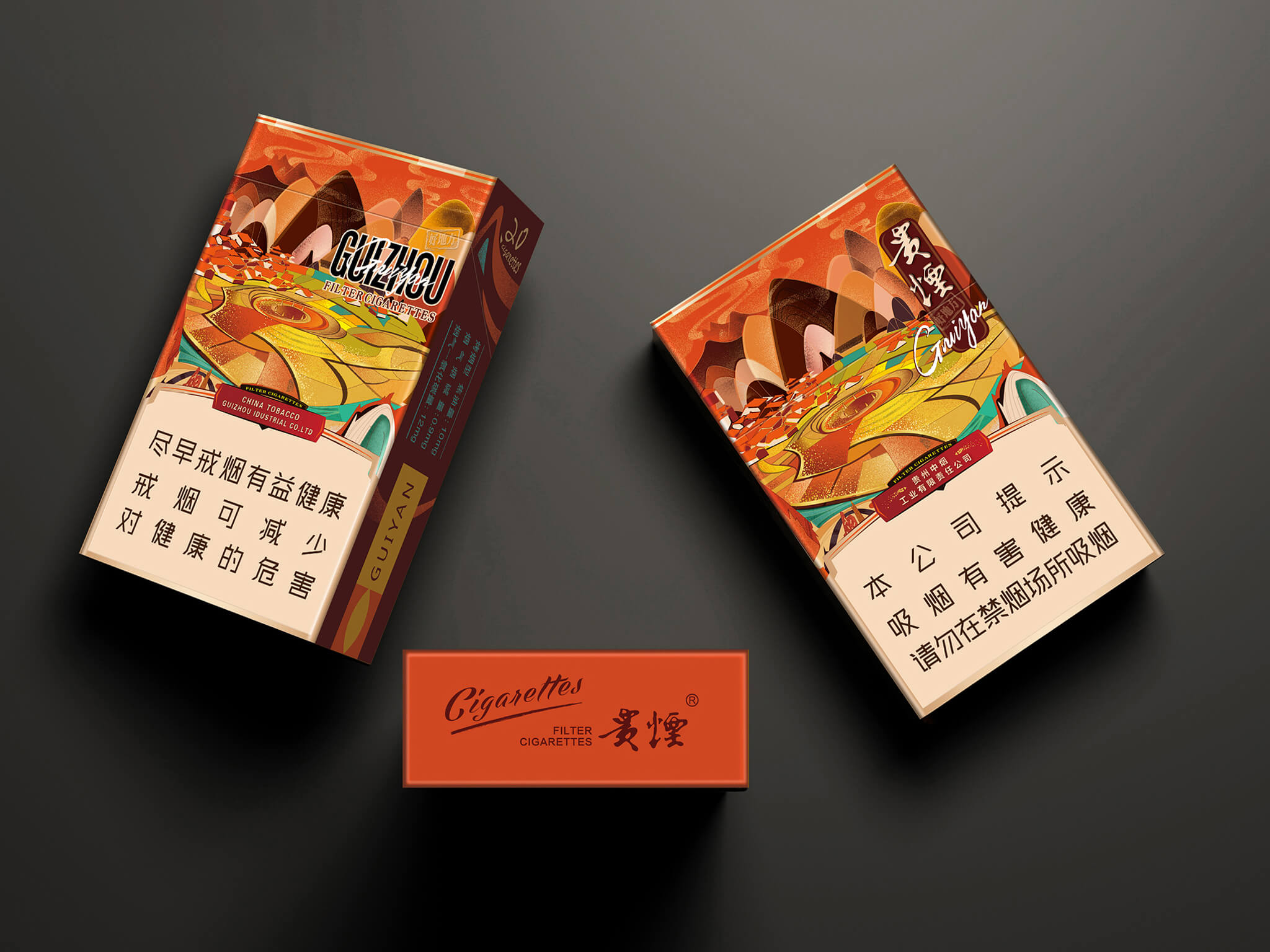 علبة سجائر GUIYAN متعددة الألوان بتصميم المناظر الطبيعية - تصميم أحمر على الطراز الصيني